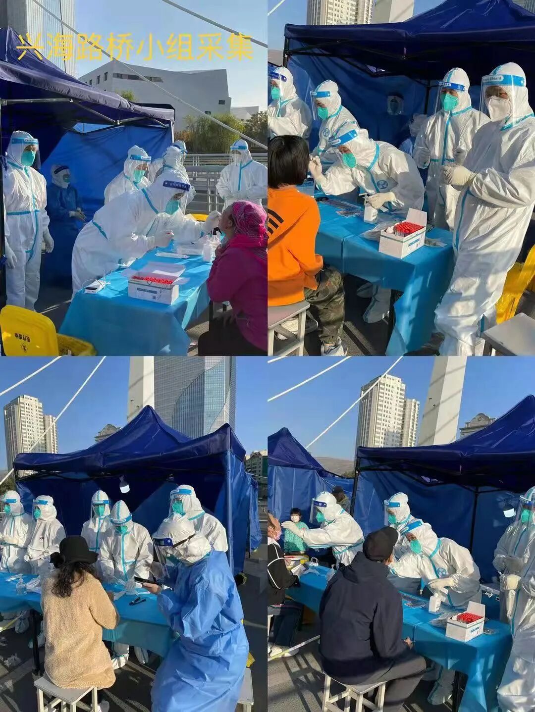 全员核酸采样应急队员培训结束后,50名队员乘坐统一车辆,赶赴疫情发生地城西区兴海路片区,通过细致划分,将队员分成4大组前往泰和祥、兴海路桥、湟岸巷、省委党校四个采样点17个工作开展核酸采集工作。采集工作于2:20分已全部就位,并投入到采样工作中。